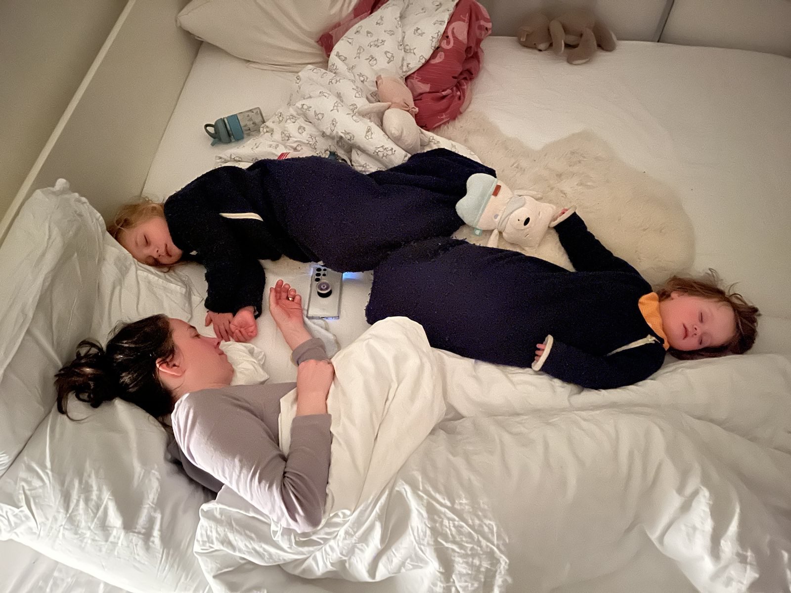 I tandem fed my kids for a year. It was awful, but I was too stubborn to stop. (Oh.. I just made that connection with the jeans... hmm)